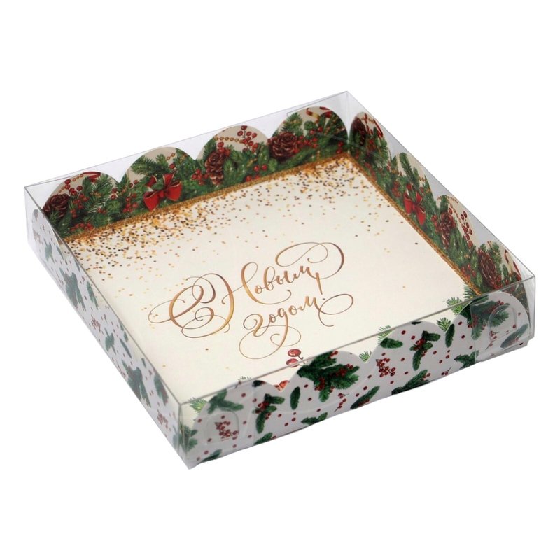 Доставка Коробка для сладостей с прозрачной крышкой "Новогодняя" 13х13х3 см из магазина в вашем городе: