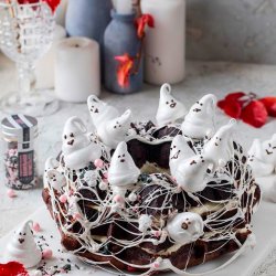 Шоколадный кекс-торт с паутиной и привидениями